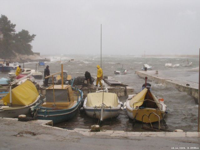 Ovakvog nevremena se ne sjećaju ni najstariji stanovnici Prigradice. Cijelo jutro je proteklo u spašavanju barki kako onih u moru tako i onih na kraju.