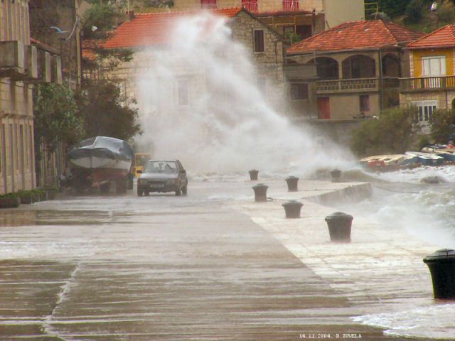 Snažna bura s kišom trajala je cijelu noć subotu na nedjelju, kad je u jutro vjetar okrenuo na istočnjak (levantaru) nezapamćene snage. Obilne padaline su poplavile blatski park i livadu sa igralištem Zmaja u centru Blata. Puno je polomljenih i srušenih stabala, poplavljenh kuća, razbijenih i potopljenih brodica ...