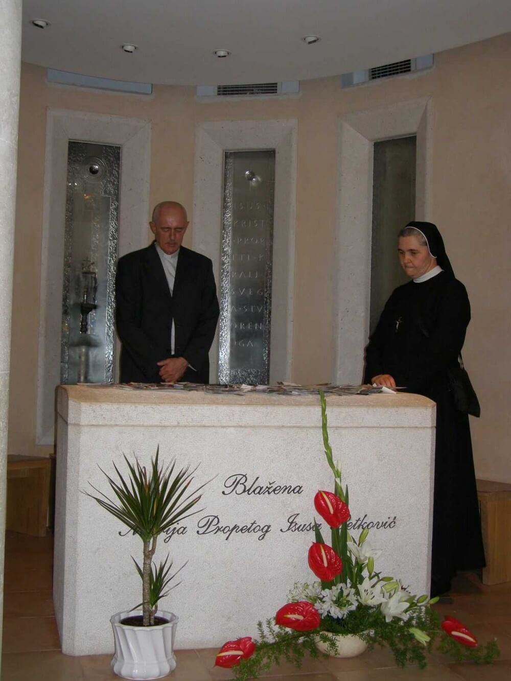 »Sveti koje slavimo u Crkvi svakom su vjerniku, a posebice svećeniku, izazov u nasljedovanju. Gledajući svece i blaženike shvatimo koliko smo kao ljudi maleni, a koliko nas Bog treba, unatoč toj našoj malenosti. Malen si jer nažalost svojim snagama ne možeš puno učiniti. Dogodit će ti se da ćeš se razdati, da ćeš izgorjeti, da te nitko neće razumjeti, da ćeš sebe staviti poput svijeće na oltar, gorjet ćeš za Božju riječ, a svijet te neće razumjeti. Neće te razumjeti ni oni tvoji najbliži jer, kad se čovjek daje iskreno i otvorena srca, onda ga jedino može razumjeti onaj koji gaje stvorio i pozvao. Zato Božja riječ teško zaživljuje u ljudskim srcima. Sve nas to kao vjernike, bez obzira na primljene sakramente kršćanske inicijacije, poziva na novu evangelizaciju. Što znači nova evangelizacija? Ona je upućena vjernicima, danas ovdje nama, u našem Blatu gdje su naši pređi već stoljećima kršteni. Upućena je nama koji imamo i čuvamo svoje običaje i svoju tradiciju, nama koji često slabo čujemo Božju riječ, ako je uopće čujemo. Srce nam je zatvoreno i još uvijek kao krštenici ne izgaramo za svoga Krista. A bl. Marija Propetoga je sva gorjela i izgarala za Krista propetoga. Sva je izgarala za Isusa, svoju ljubav, i nije joj bilo teško napustiti sigurnost svoga rodnoga mjesta i otići u daleke krajeve da i tamo bude živa svjedokinja Krista uskrsloga, da posvjedoči čovjeku u samoći, bijedi i beznađu da je biti čovjek ljubavi istinsko kršćansko poslanje.